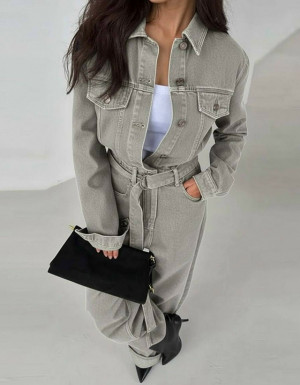 Стильный джинсовый комбинезон с поясом и акцентом на талию: эффектно вытягивает силуэт и смотрится дорого. шт